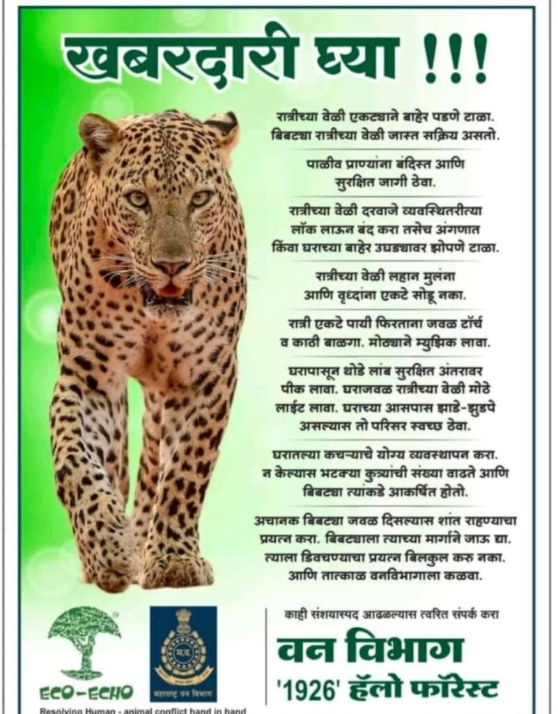 नागरिकांना समूहाने फिरणे, निर्जन व डोंगराळ भागात न जाणे, आणि पहाटे व सायंकाळी अंधारात पुरेशी काळजी घेण्याचे आवाहन प्रशासन व स्थानिक पोलिसांनी केले आहे.